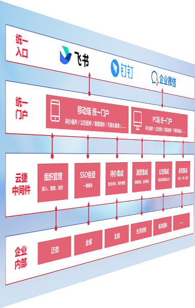 对协作平台提供支持服务,,支持企业应用与协作平台对接,,,,包含组织同步、、消息集成、、待办集成等。。支持目前主流的协作平台:钉钉、、、、企微和飞书。。